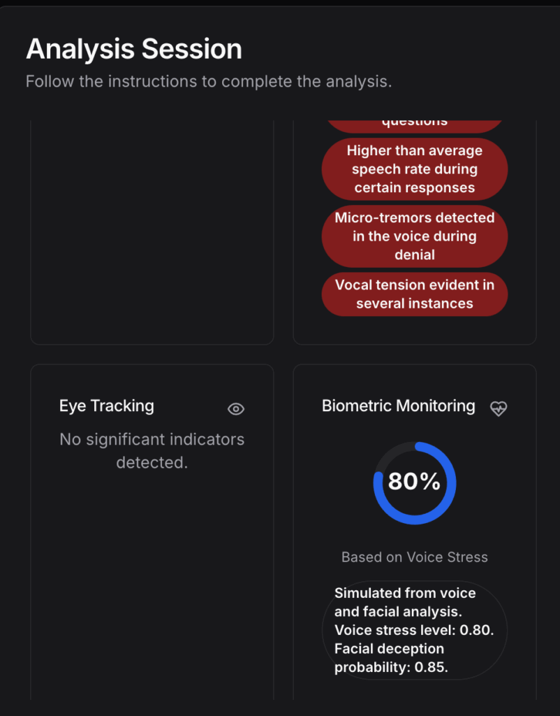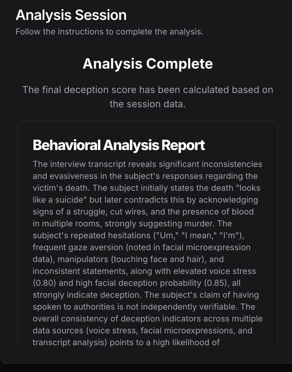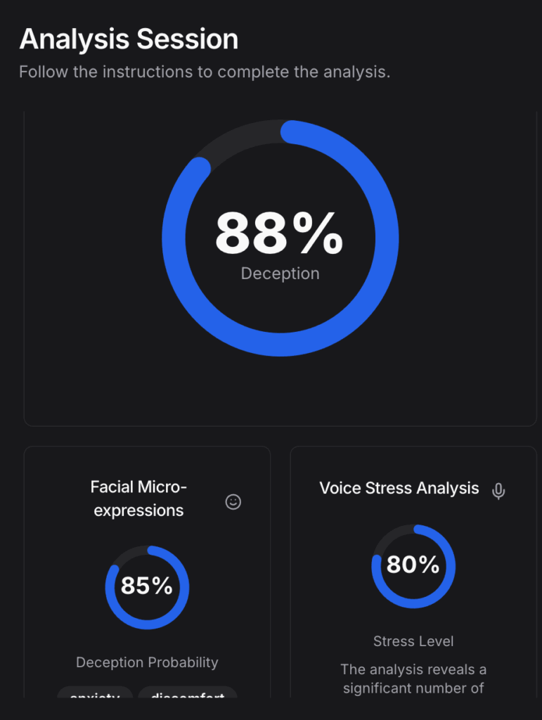 AI-powered forensic truth analysis. Detect deception across voice, face, and language — in seconds.